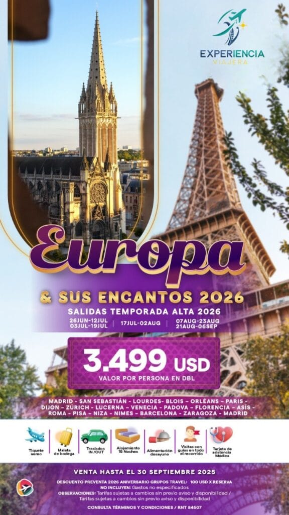 Viajar no tiene que ser complicado. En Experiencia Viajera hacemos que tu próximo destino sea tan fácil como decidir dónde quieres estar. Como una de las mejores agencias de viajes en Colombia, te ofrecemos paquetes turísticos internacionales desde Colombia con todo incluido: vuelos, hospedaje, seguros y asistencia personalizada.